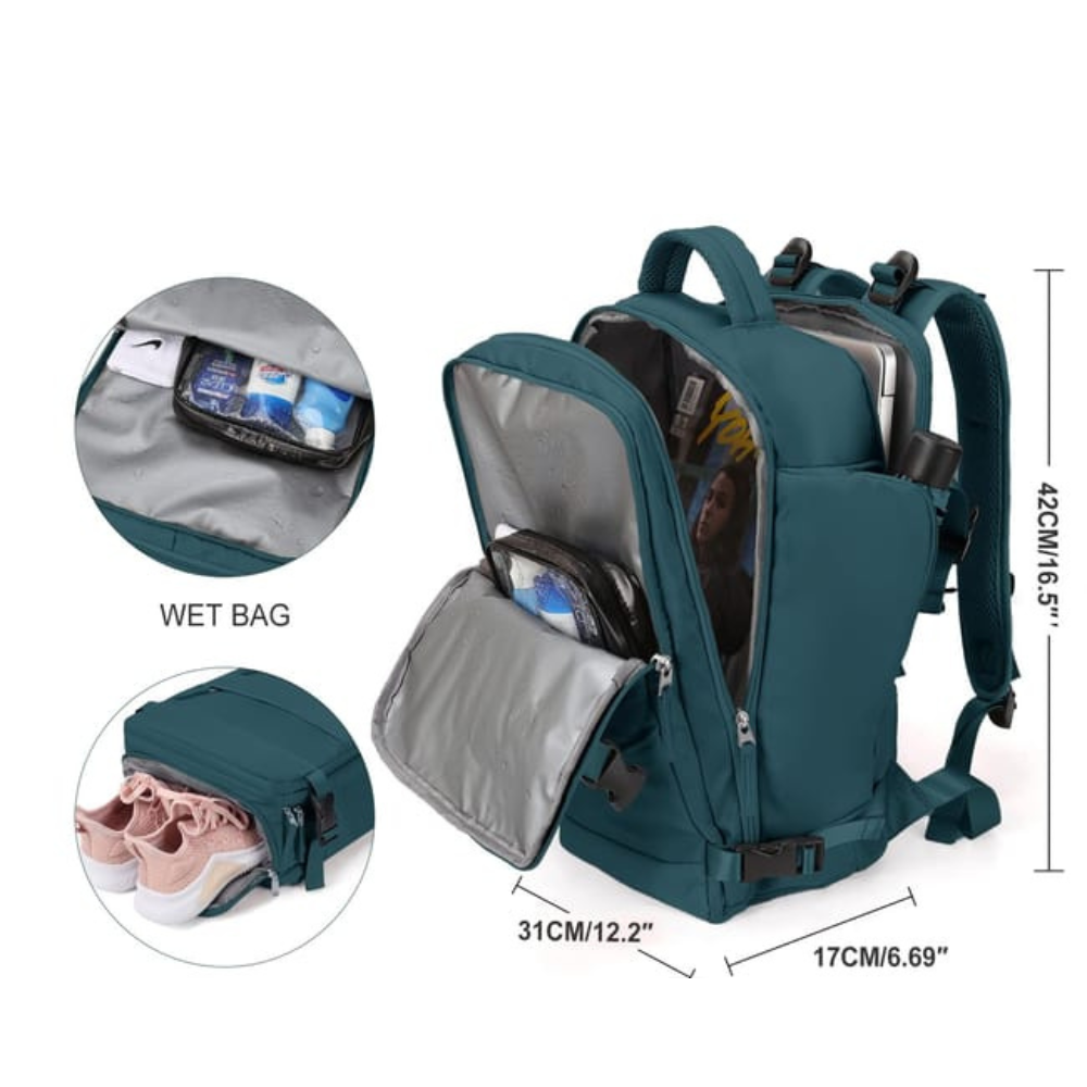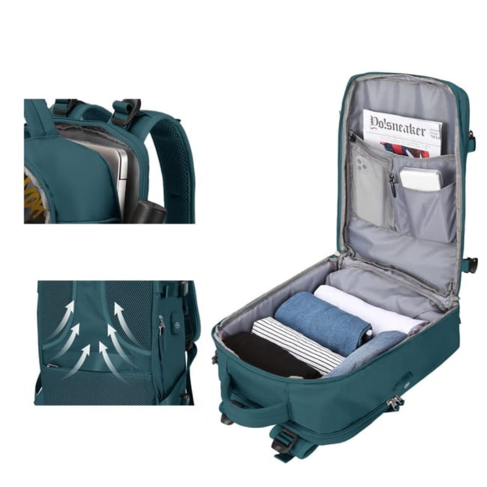 Voyager léger, sans compromis. Avec plusieurs compartiments, ses sangles de maintien et ses bretelles ergonomiques, tout reste organisé et confortable. Le sac respecte les limites de poids cabine (6–12 kg) pour éviter tout frais surprise. Et grâce au compartiment PC latéral et aux poches passeport, vous passez les contrôles en un instant, sans stress ni perte de temps.