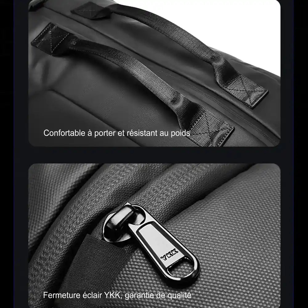 Les poignées apportent une option de transport supplémentaire lorsqu’il est porté à la main. La fermeture éclair YKK garantit une ouverture et une fermeture aisées du compartiment principal.