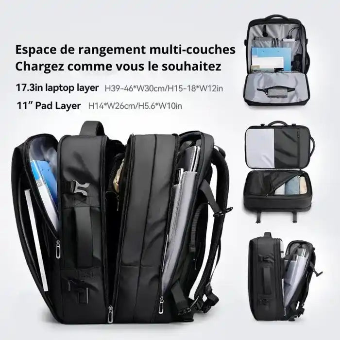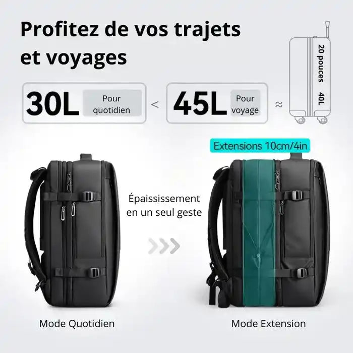 Emporte plus sans compromis grâce au sac a dos extensible bien organisé