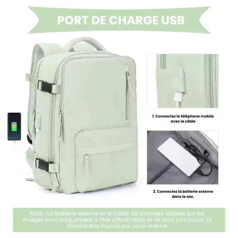 Son port USB externe vous permet de recharger votre téléphone en voyage (powerbank non incluse).