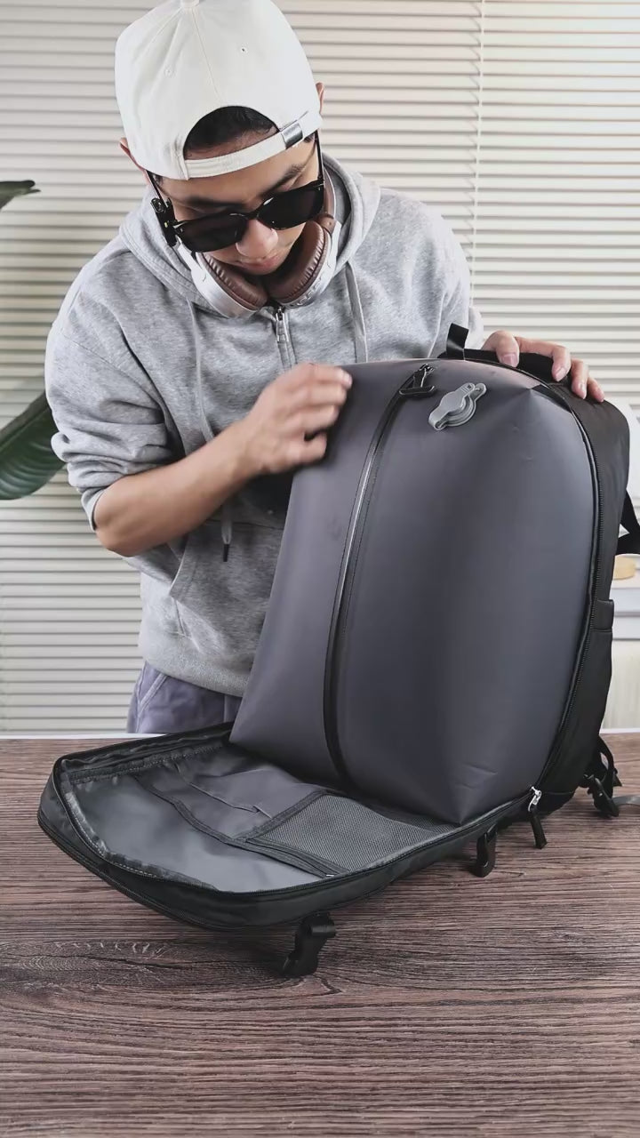 Grâce au compartiment de compression sous vide, vous doublez votre capacité et rangez vos affaires de façon impeccable. Chaque vêtement reste plié, net et protégé, pour voyager plus longtemps sans jamais sacrifier l’ordre.