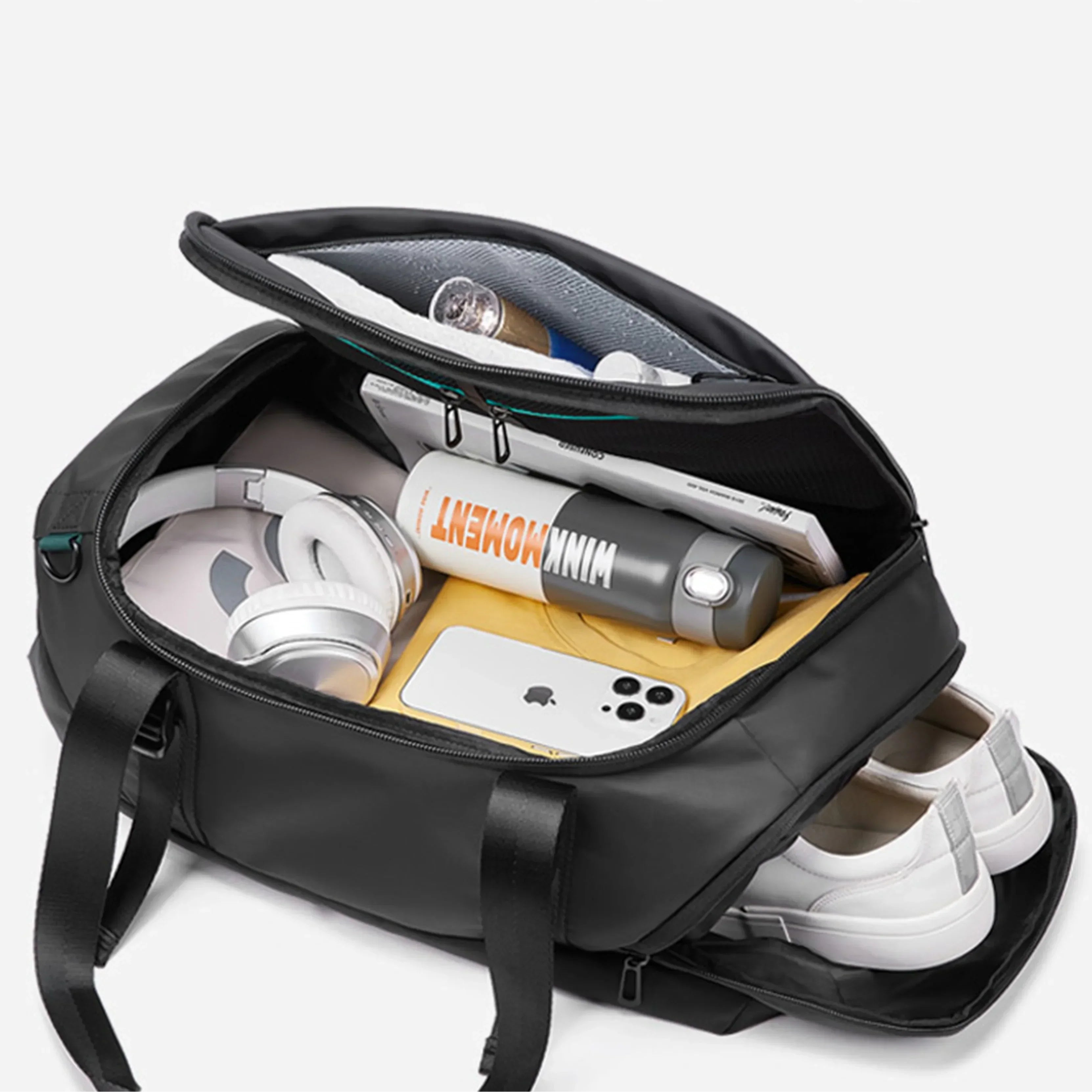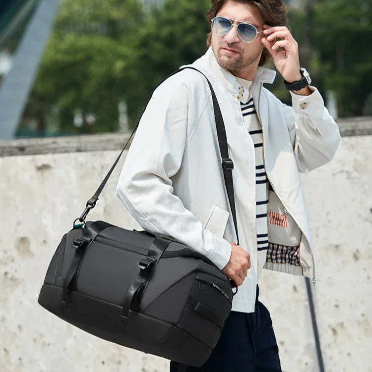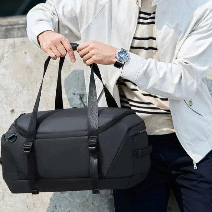 Le sac combine la praticité d’un sac à dos et la fonctionnalité d’un bagage à main. Grâce à sa conception 2-en-1, il s’adapte à différents styles de déplacement. Son revêtement imperméable protège le contenu par temps pluvieux, tandis que l’intérieur propose un compartiment séparé pour vêtements secs et humides, ainsi qu’un espace dédié pour les chaussures.