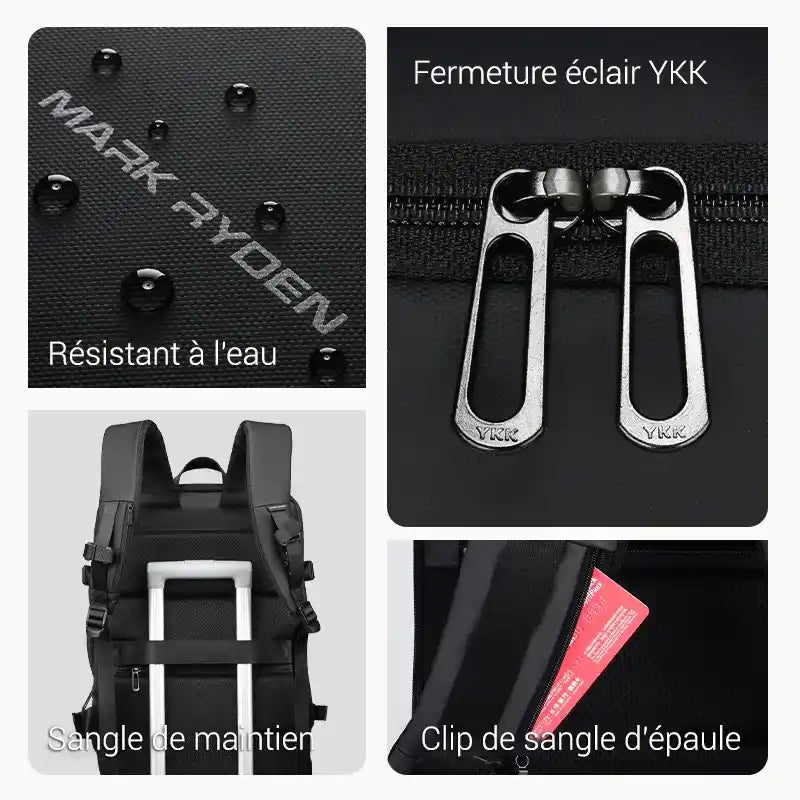 Chaque objet trouve sa place. Que ce soit votre bouteille, tablette, documents ou accessoires du quotidien, le rangement reste fluide et intuitif, vous gardant toujours prêt à partir sans perdre de temps.